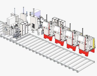 The fully automated heat treatment modular line includes multiple independent vacuum heating and quenching chambers to provide high production capacity and maximum flexibility for a wide range of applications in the automotive and aviation industries.